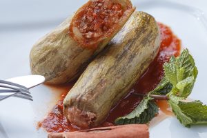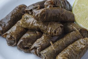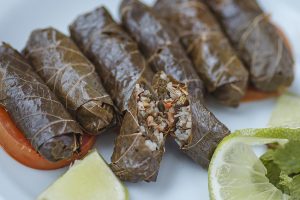 Charuto da folha de uva recheado com carne.