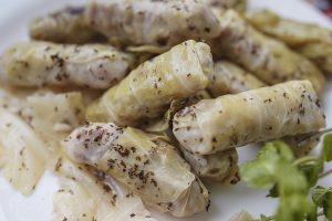Charuto de folha, recheado com grão de bico, arroz, salsa e especiarias. Charuto feito artesanalmente.