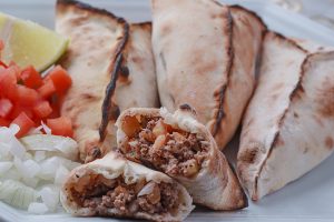 Massa artesanal feita de trigo, recheada com queijo mussarela, cebola e salsa.