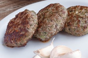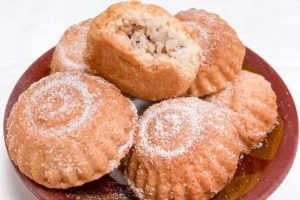 Quibe de berinjela recheado com carne moída.
